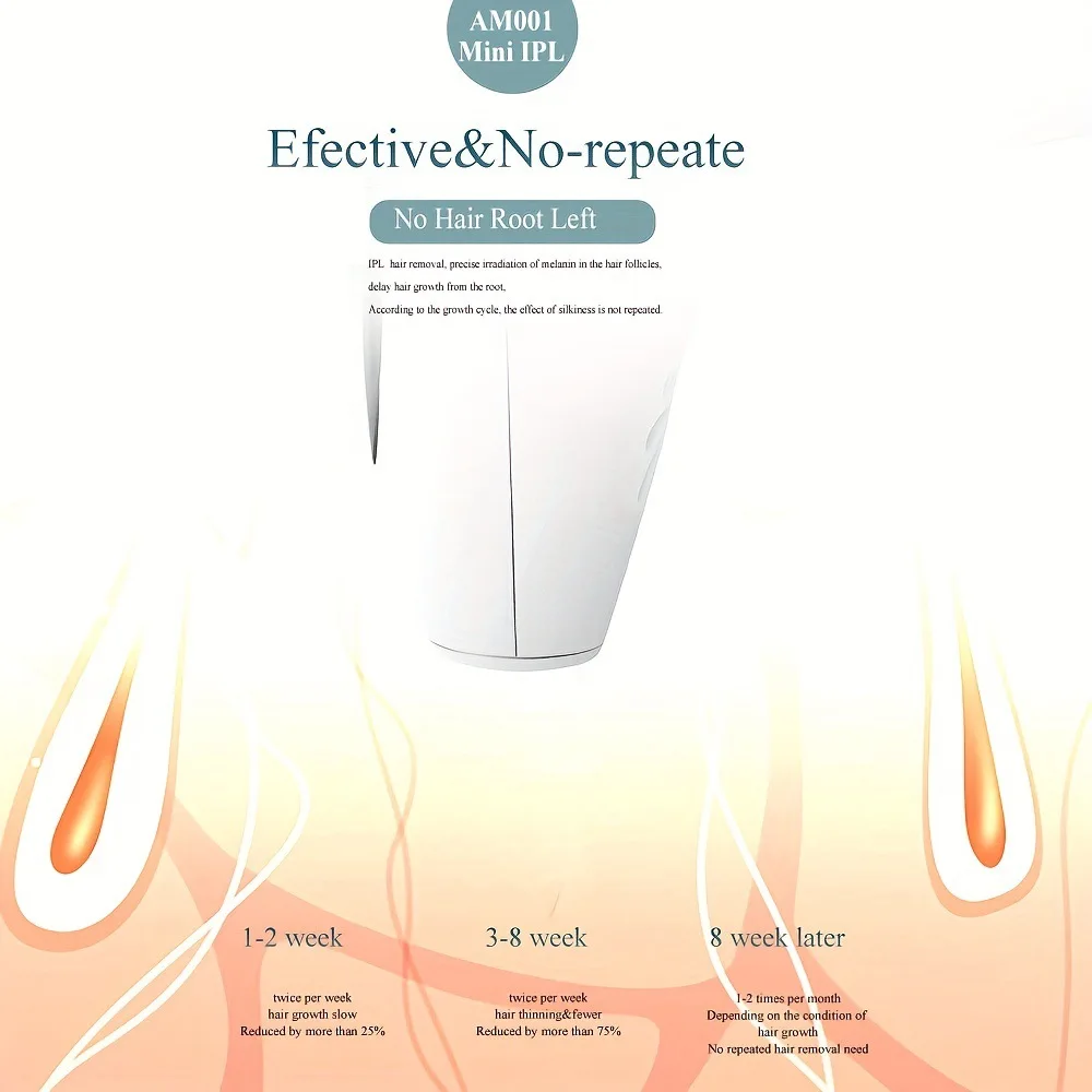 This type of hair removal device is different from a razor and cannot remove your hair within a few minutes or a few days. This type of product does not directly act on the hair, but directly on your hair follicles. You need to use it for a long time to get the effect. Please use it for at least 1.5-2 months. If your hair is longer than 8mm, please use a razor to remove the surface hair before using the instrument!!!People with strong and hard hair usually take longer.