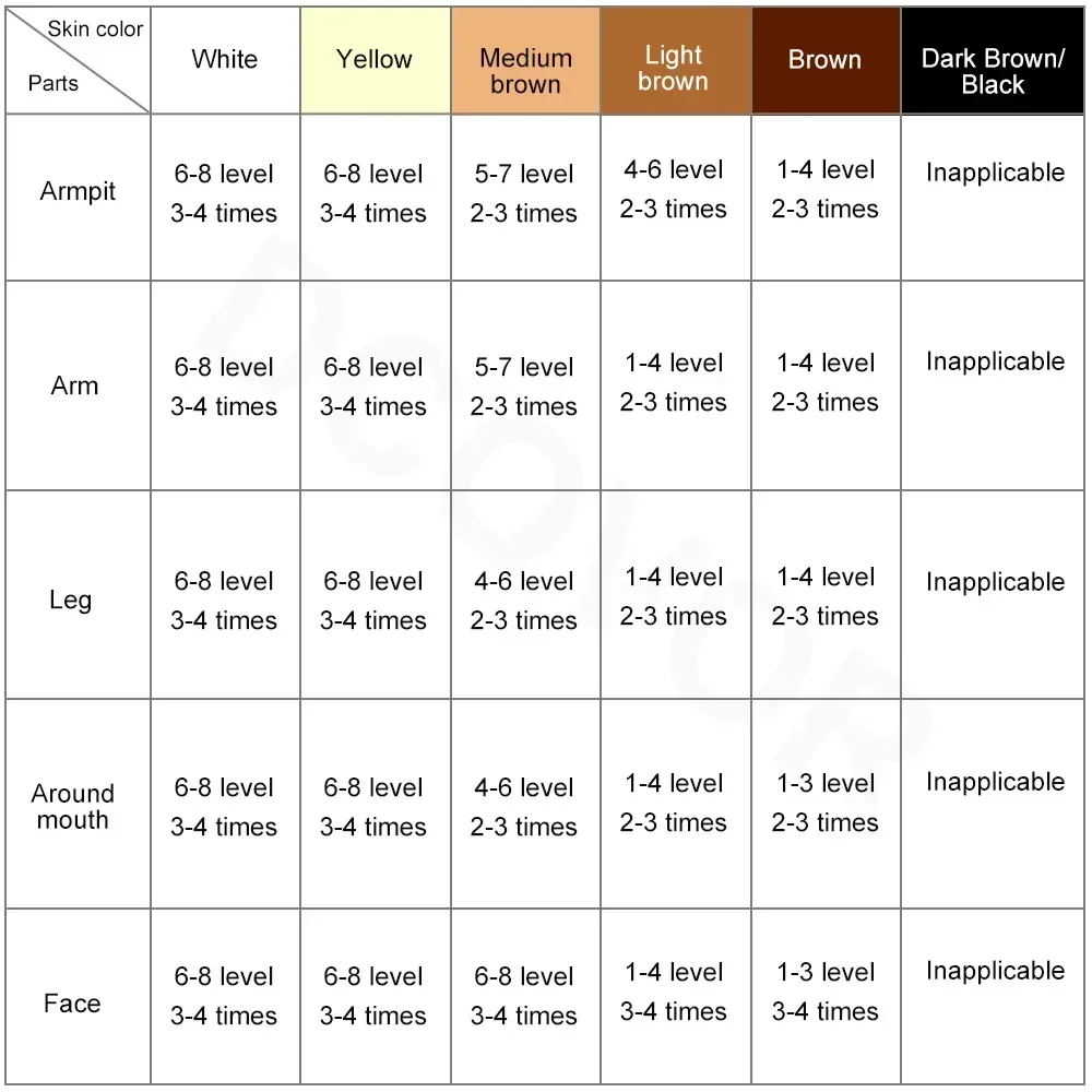 (1-3 levels of hair removal to improve skin texture, 1-8 levels: hair removal)