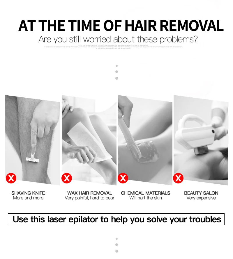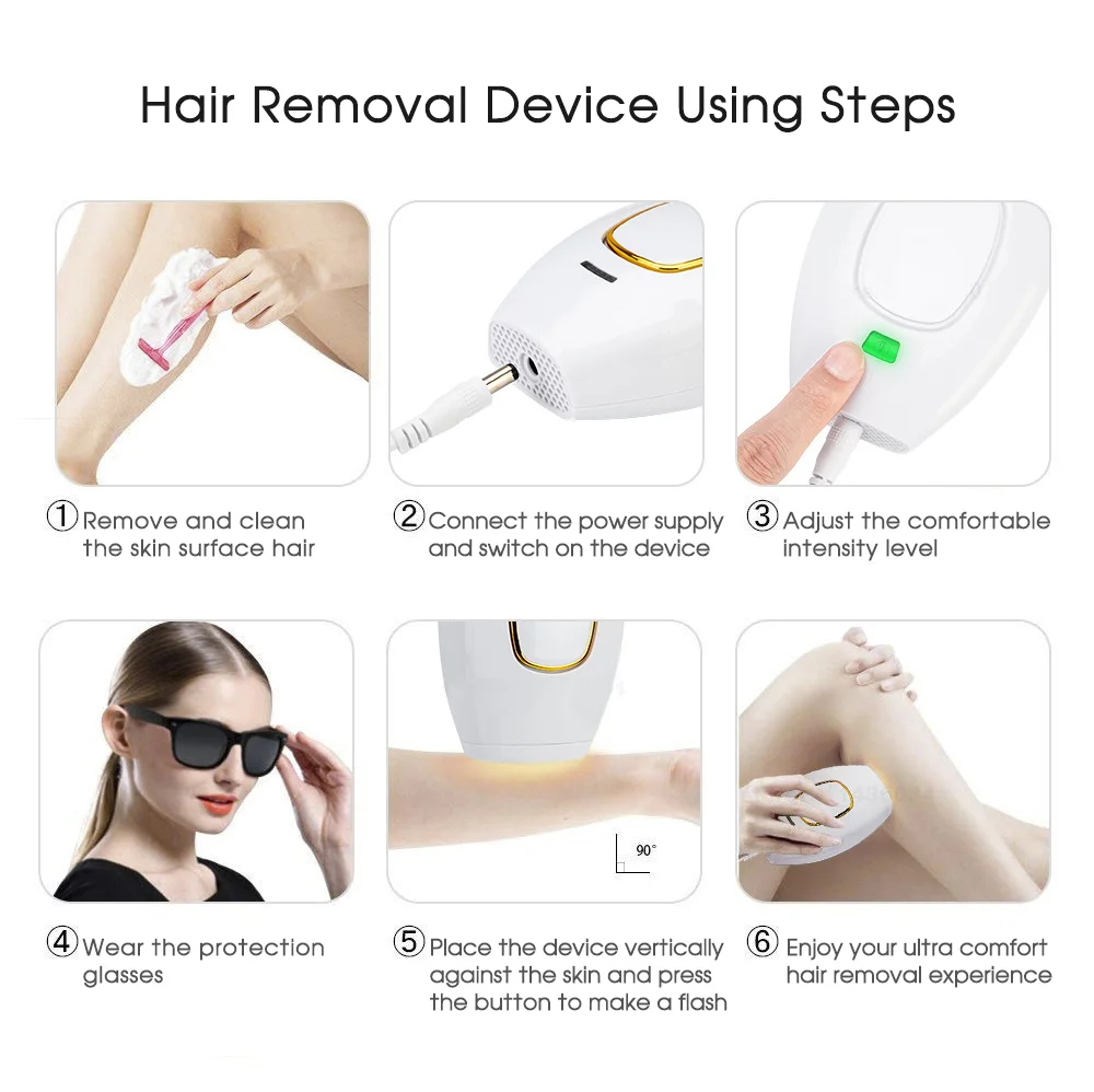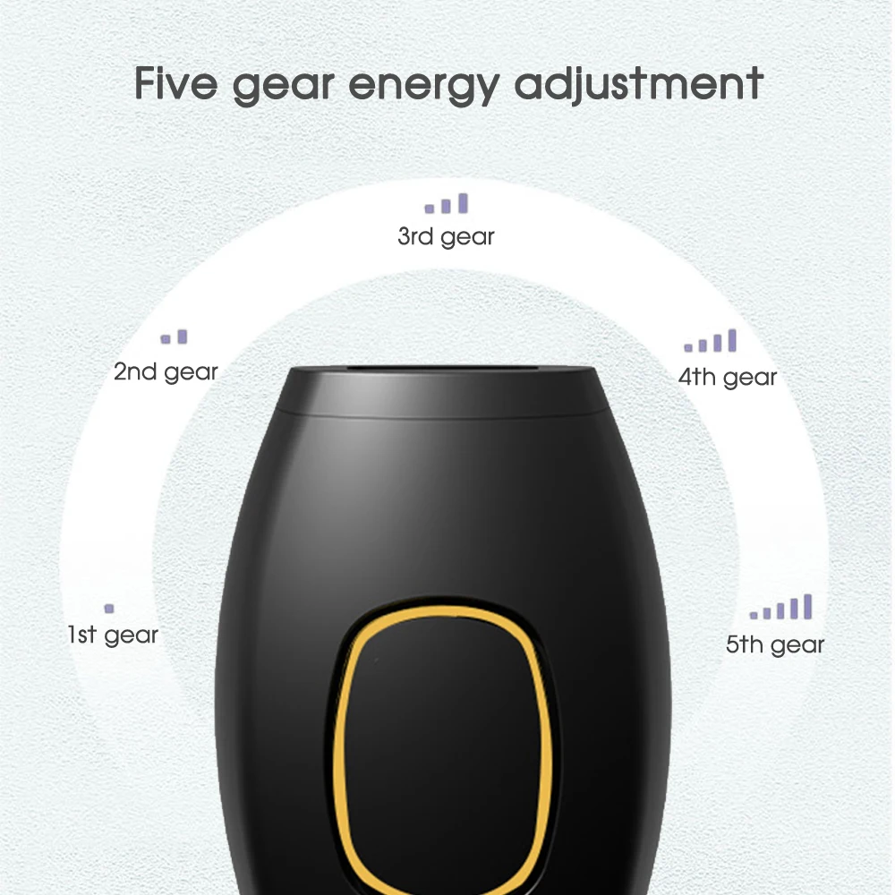 One of the biggest advantages of IPL over other forms of hair removal is that it is far less painful. The feeling can be described as a warm sensation on the skin. There are five Gear Adjustment and Care for sensitive parts,only hair removal,not hurt the skin .